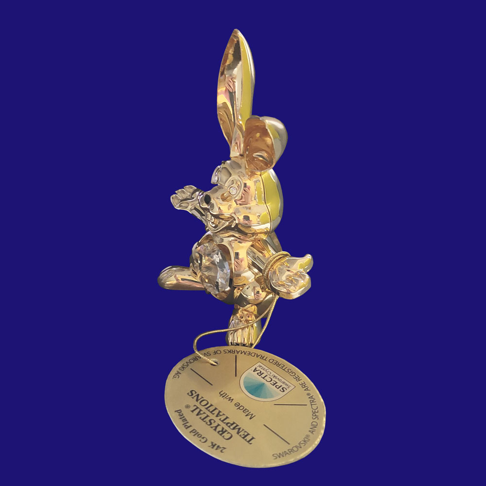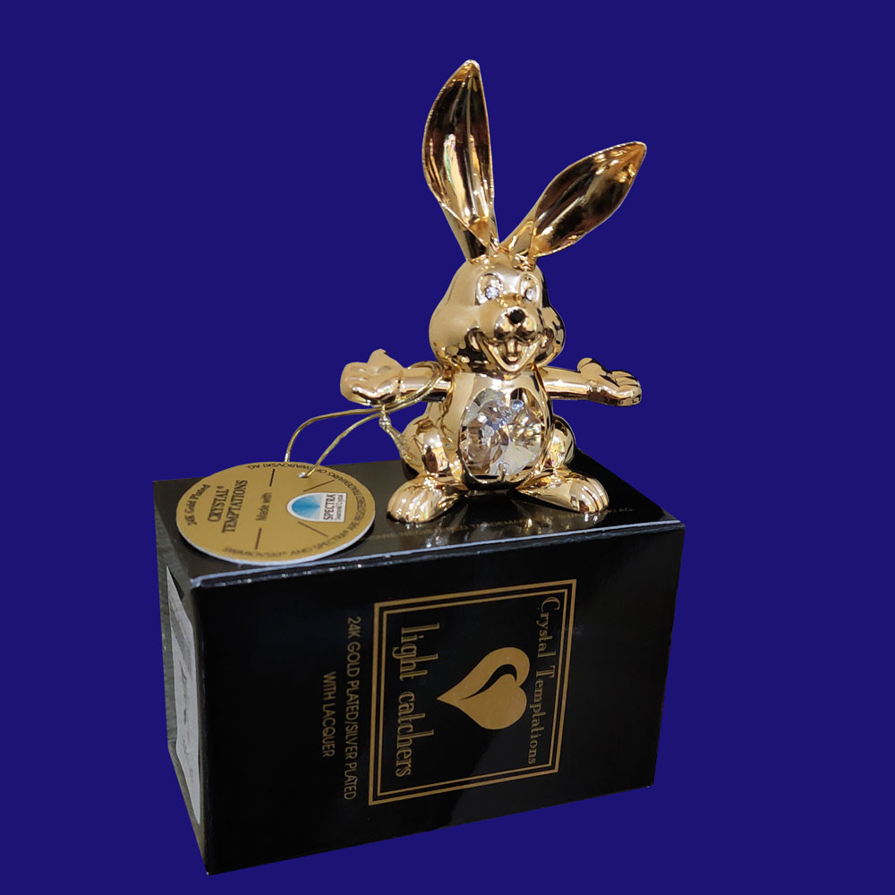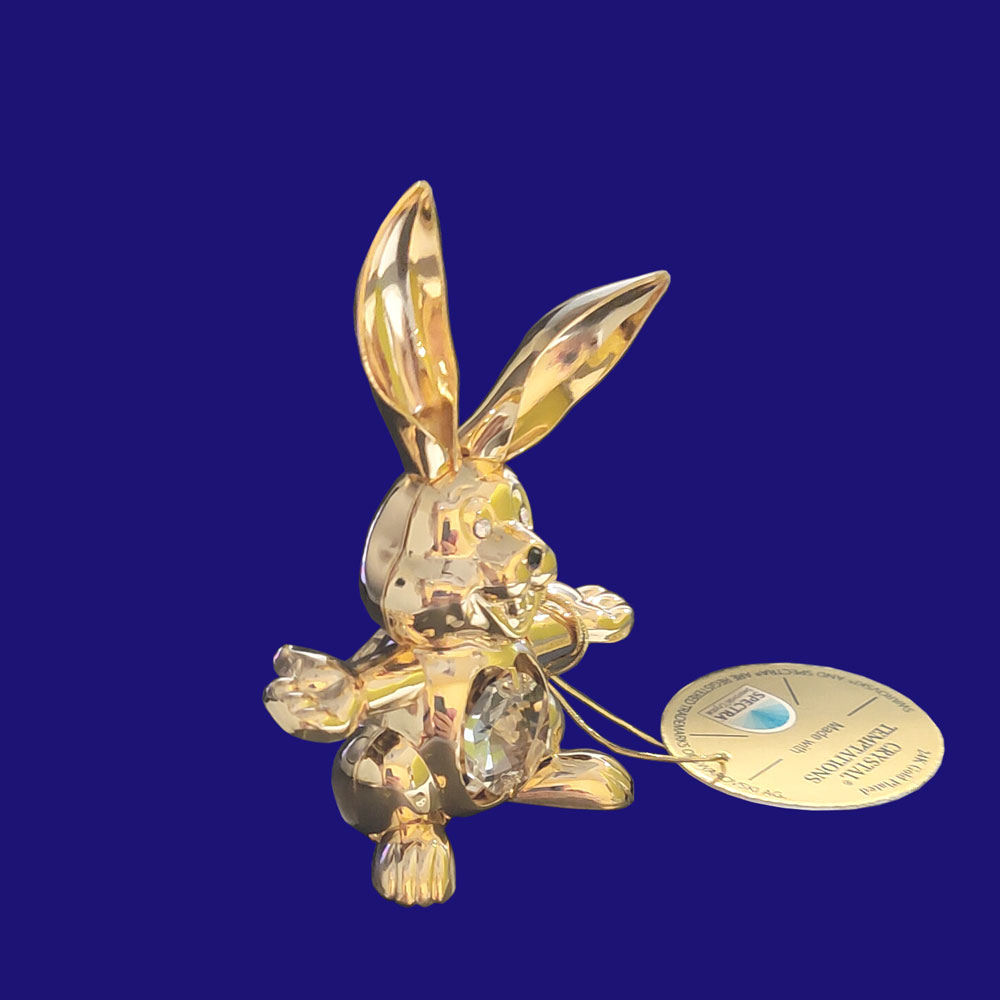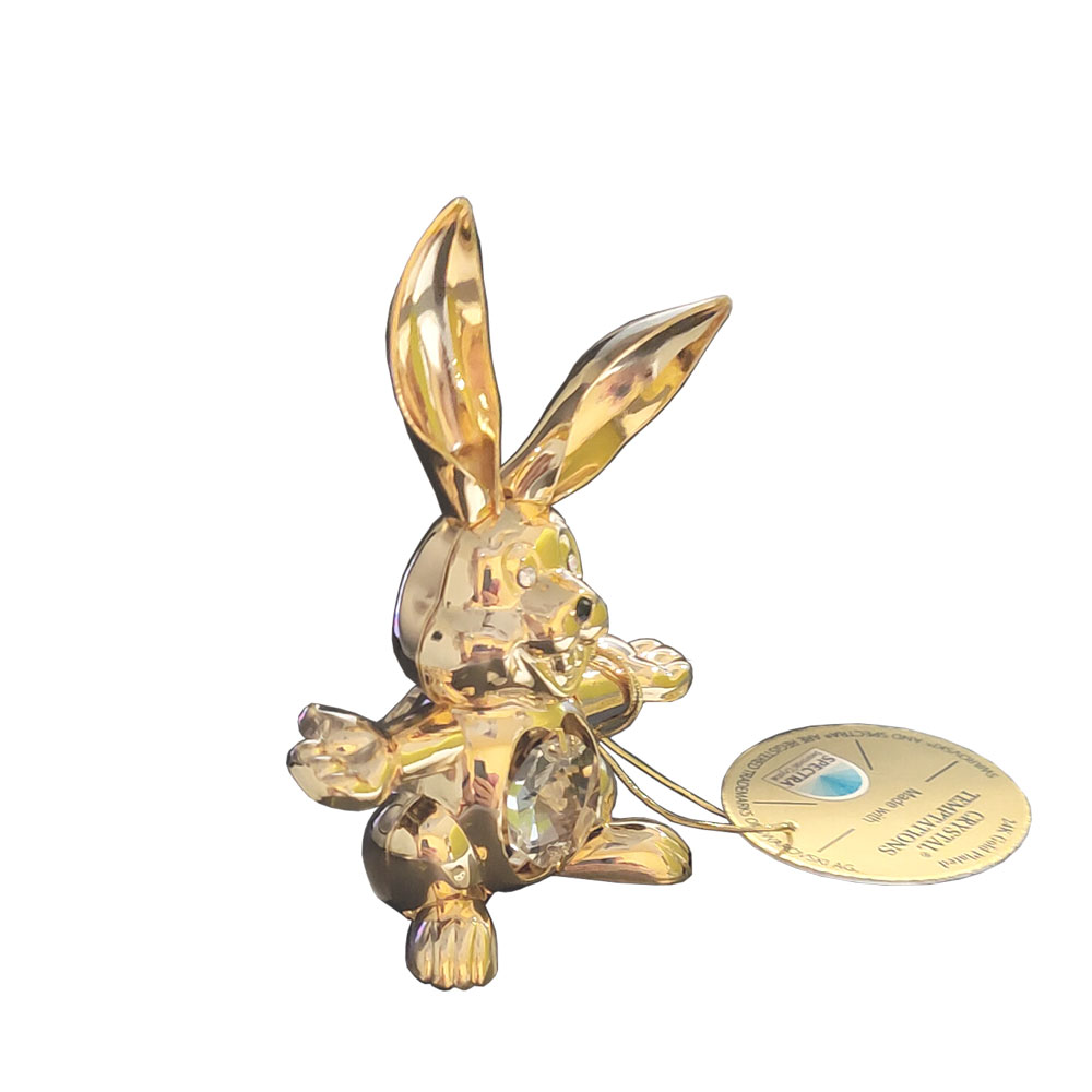 Талисман, приносящий удачу, символ 2023 года по китайскому календарю КРОЛИК (размер фигурки 5,5х2,5х8,0 см). Фигурка из металла с покрытием из 24-х каратного золота, украшенная двумя кристаллами Swarovski — прекрасное приобретение, приносящее согласно китайским традициям удачу в наступающем 2023 году. Отличный подарок для друзей и близких. Оригинальная технология огранки хрусталиков SPECTRA позволяет сиять ярче любого драгоценного камня. Хрусталики SPECTRA Swarovski — это символ изысканного вкуса. Символ года с хрусталиками Swarovski можно подарить на Новый год друзьям, родственниками и коллегам. Подойдет как подарок взрослому и ребенку.